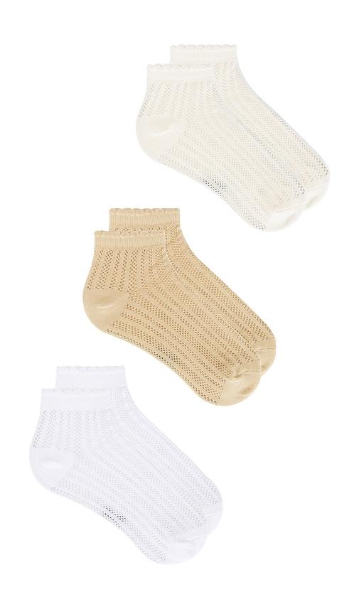 STEMS 3-PACK LACE KNIT ANKLE SOCKS IN NEUTRAL.