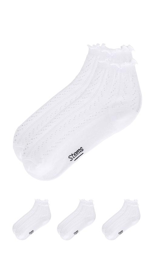 STEMS 3-PACK POINTELLE MID CREW SOCKS IN WHITE.