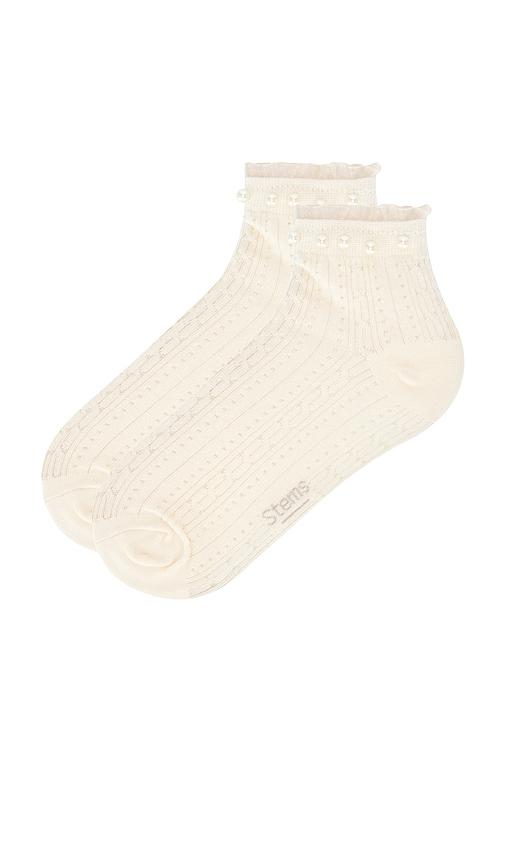 STEMS PEARL TRIM ANKLE SOCKS IN IVORY.