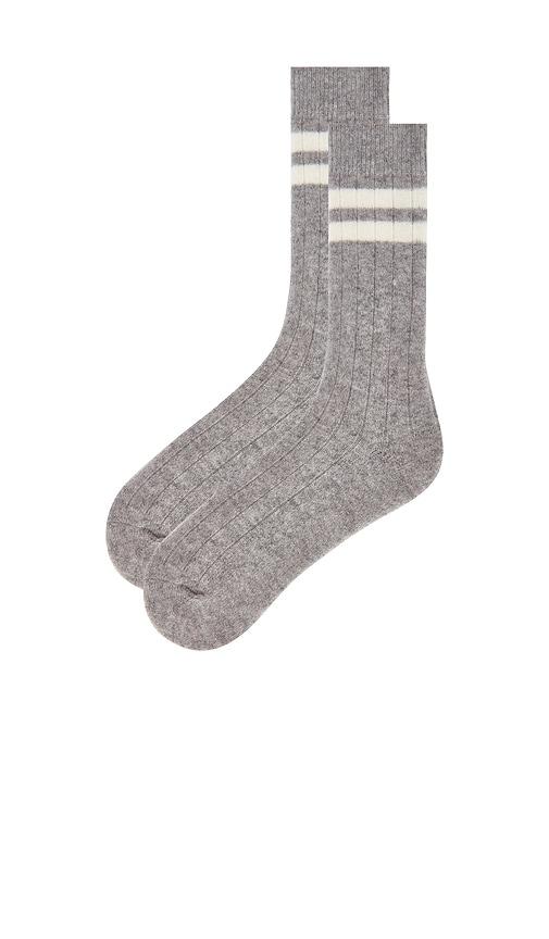 WHITE & WARREN CASHMERE RIBBED STRIPED SOCKS IN GREAY.