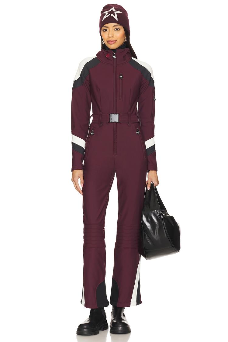 maroon ski overall