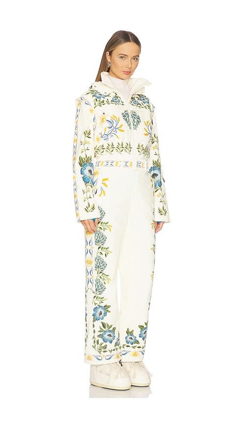 WHITESPACE X FARM RIO ONE PIECE SKI SUIT IN CREAM.