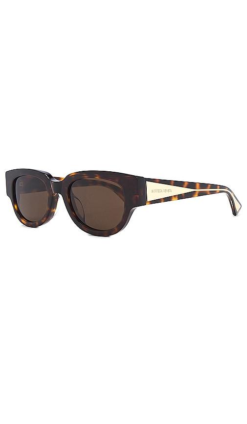 BOTTEGA VENETA NUDE TRIANGLE CAT EYE SUNGLASSES IN BROWN.