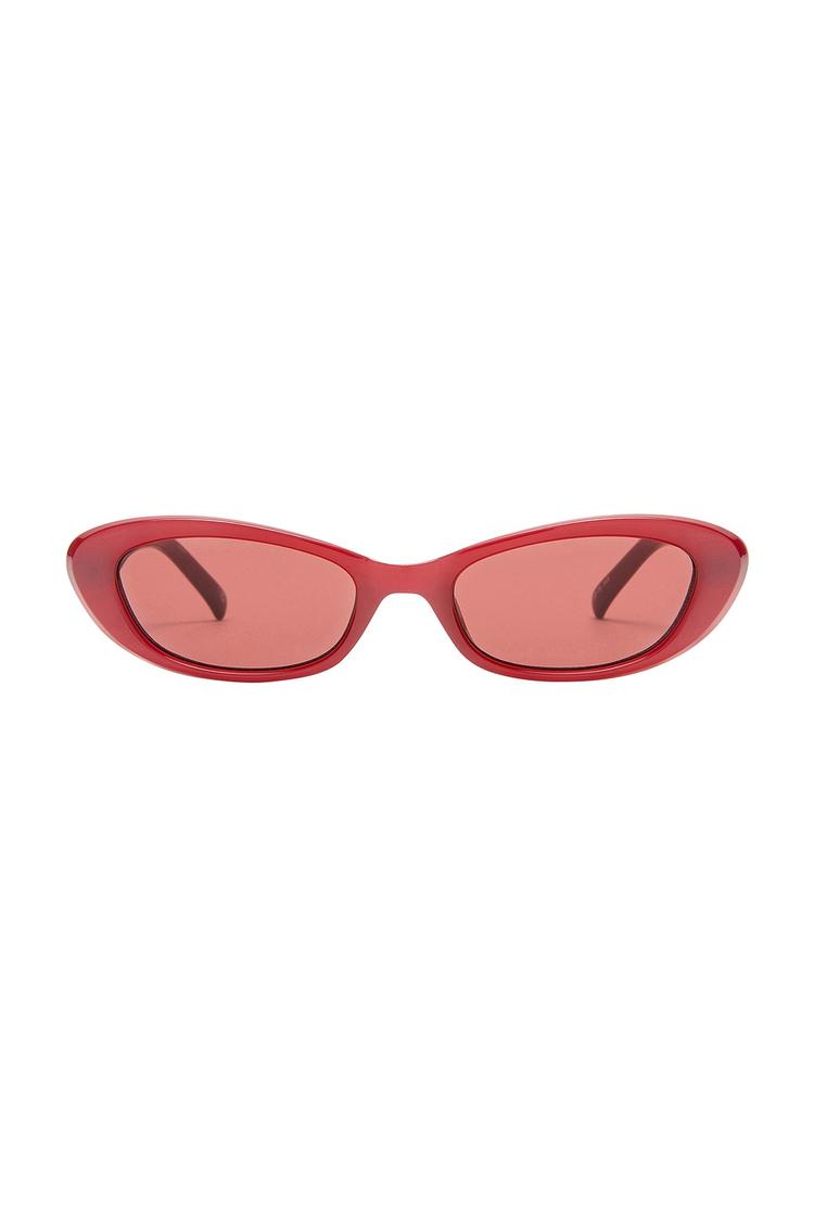 Complete your sun-soaked look with The Whisperer sunglasses by Le Specs. This red acetate cat-eye pairs a bold, all-over red frame with luxe gold accents on the temple arms for a touch of glam. The pink-tinted solid lenses provide a flattering, modern glow while keeping the silhouette slim and wearable. Lightweight and comfortable, these sunglasses blend retro charm with contemporary edge, making them perfect for casual days, weekends away, or a chic city stroll. Elevate any outfit with a statement that’s as timeless as it is trend-forward.