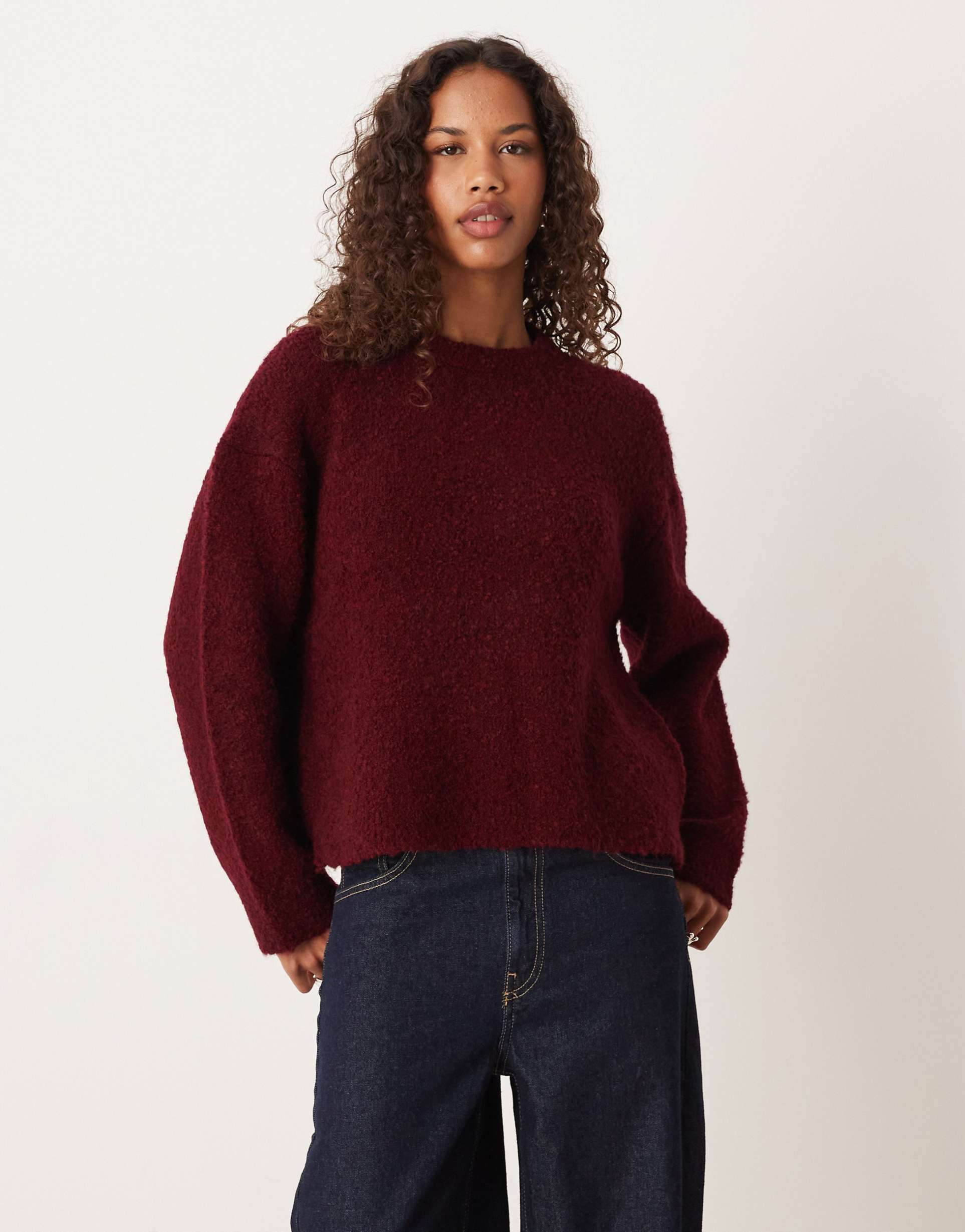 ASOS DESIGN BOXY BOUCLE CREW NECK SWEATER IN BURGUNDY