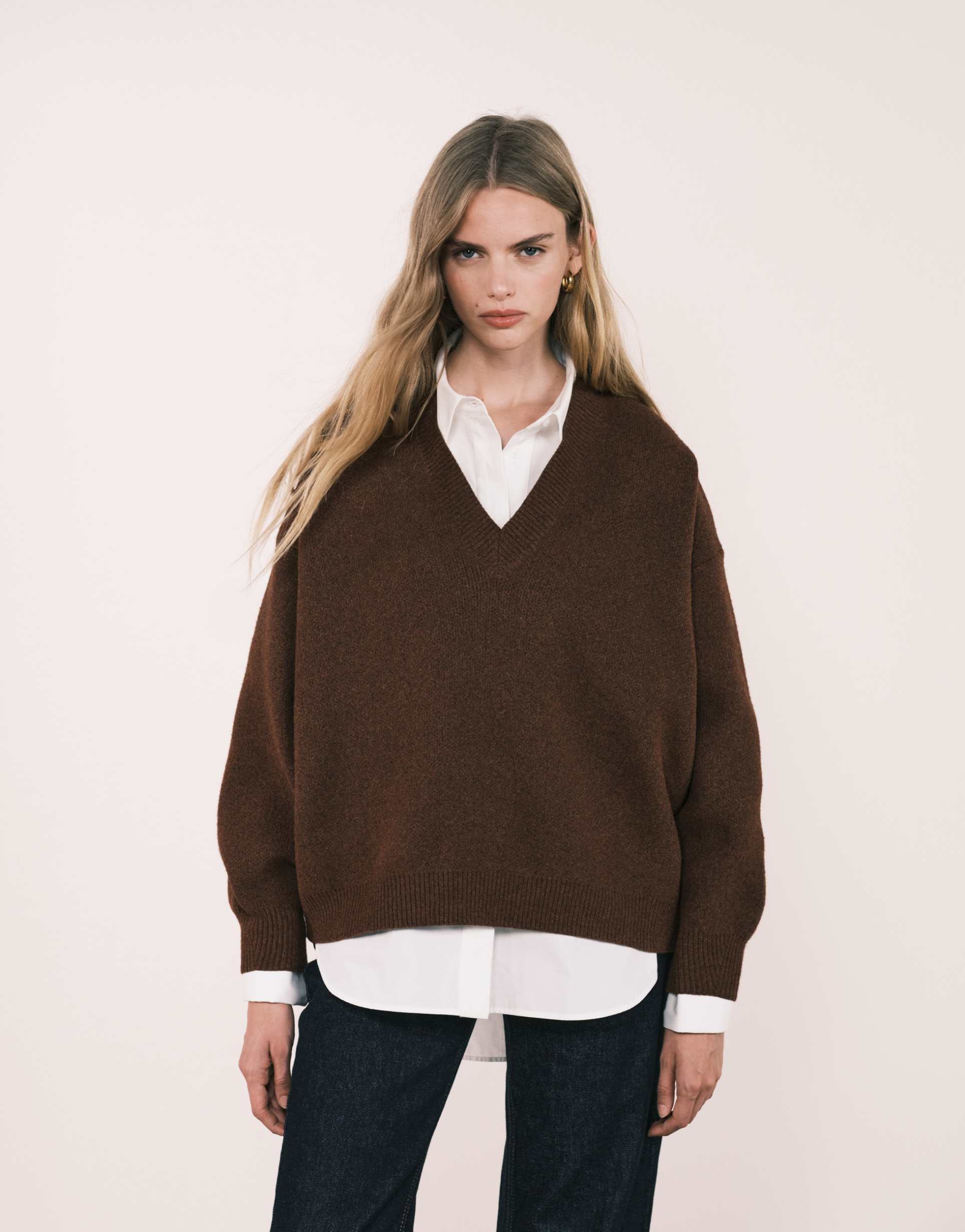 ASOS DESIGN EXTREME BOXY V-NECK STRUCTURED SWEATER IN CHOCOLATE