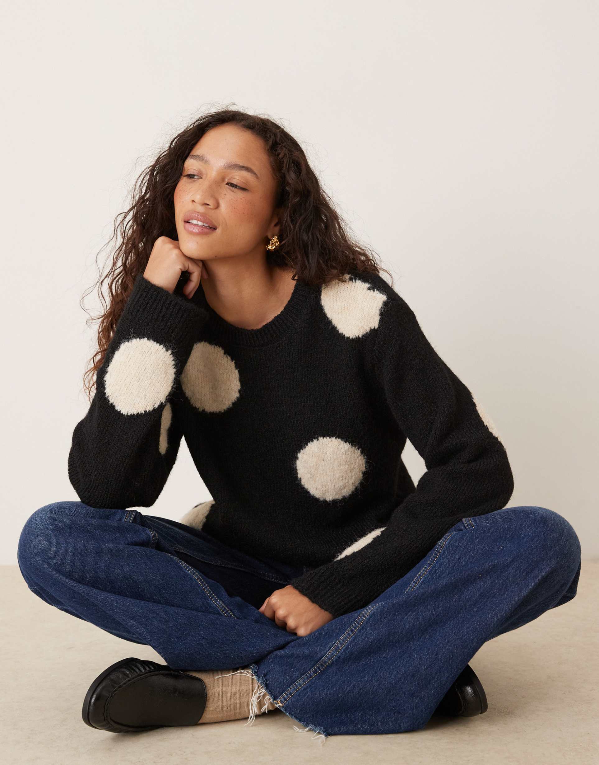 polka dot sweater for street style