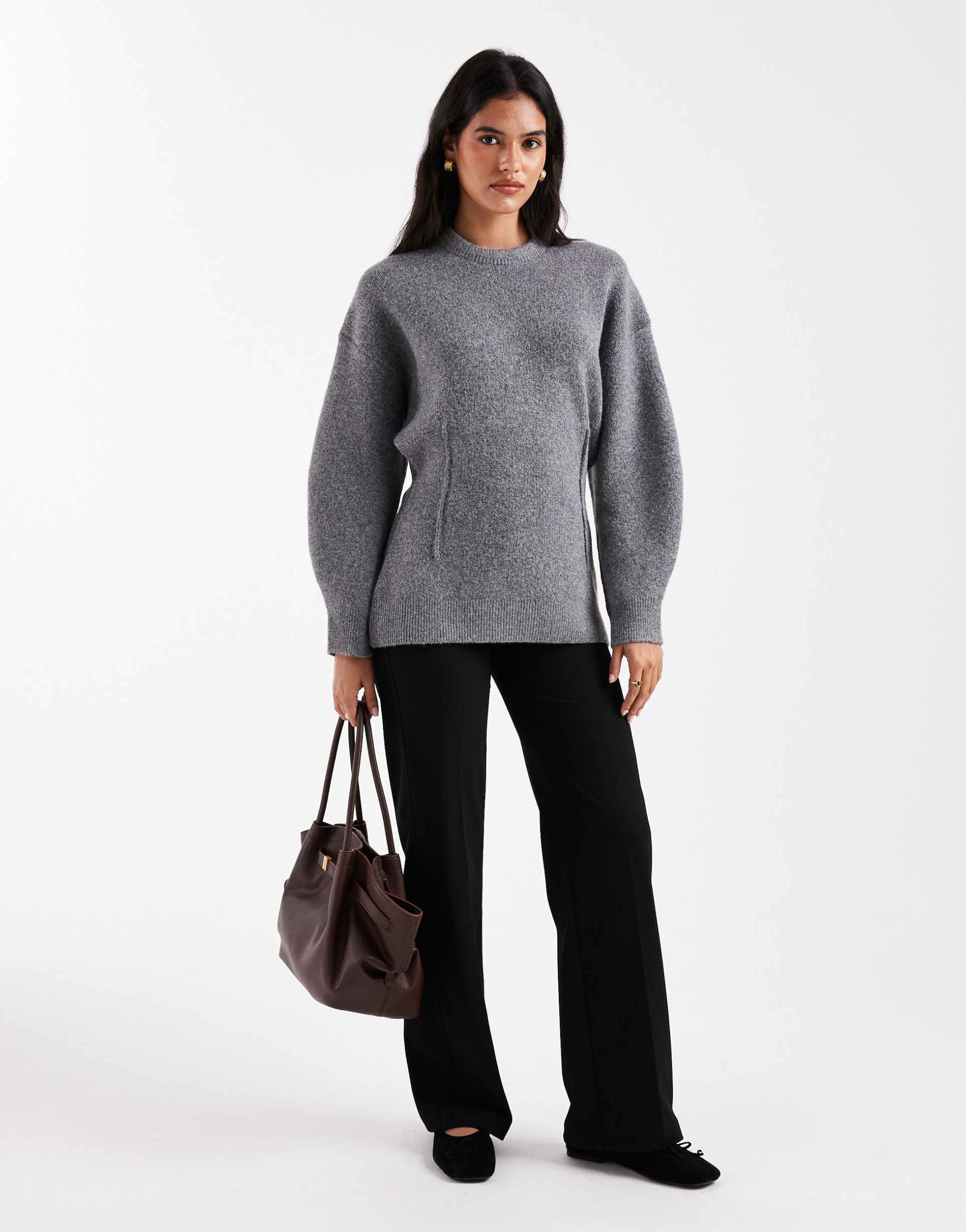 ASOS DESIGN STRUCTURED LONGLINE WAISTED CREW NECK SWEATER IN GRAY