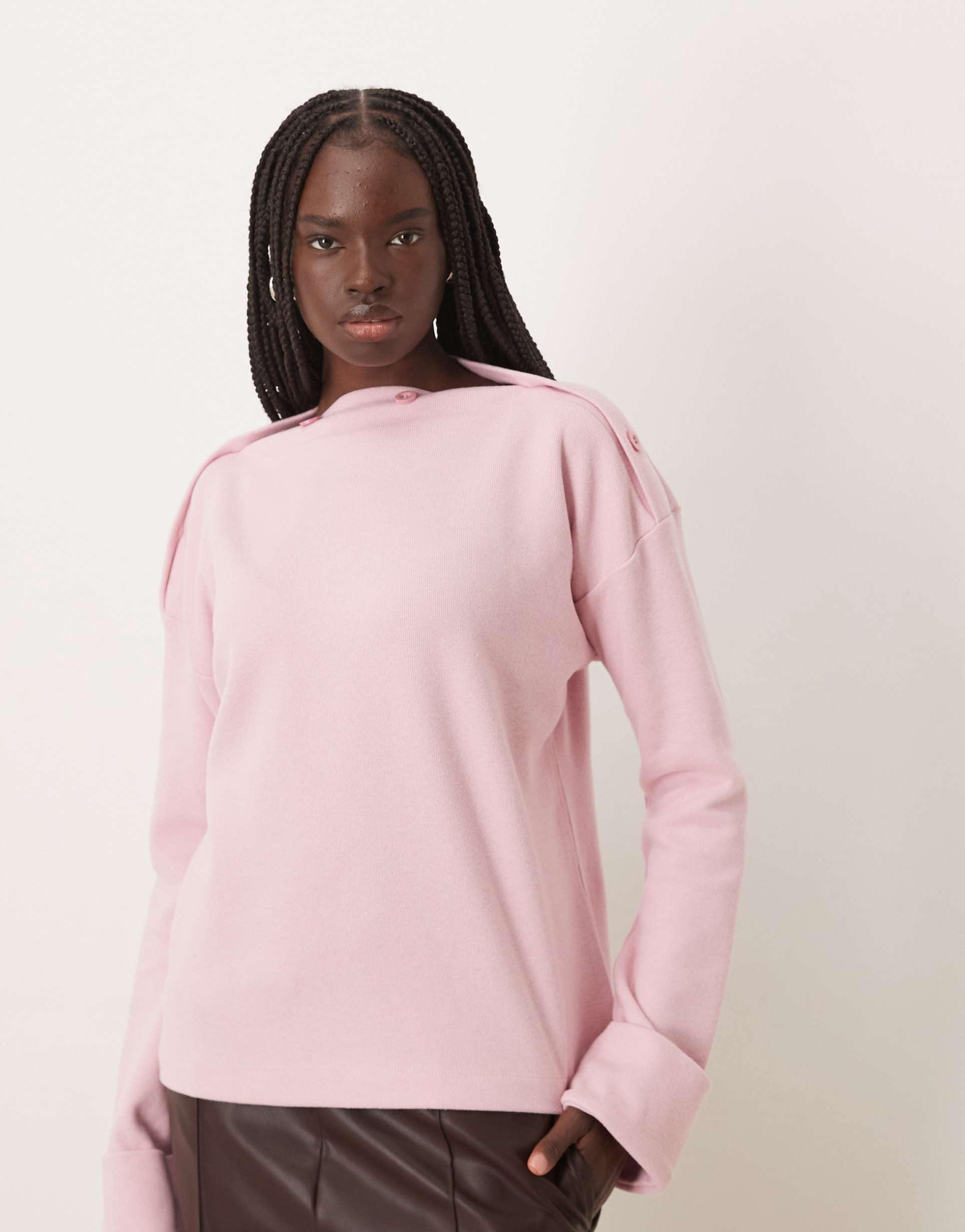 ASOS DESIGN SUPERSOFT BUTTON DETAIL BOAT NECK LONG SLEEVE SWEATER IN MAUVE
