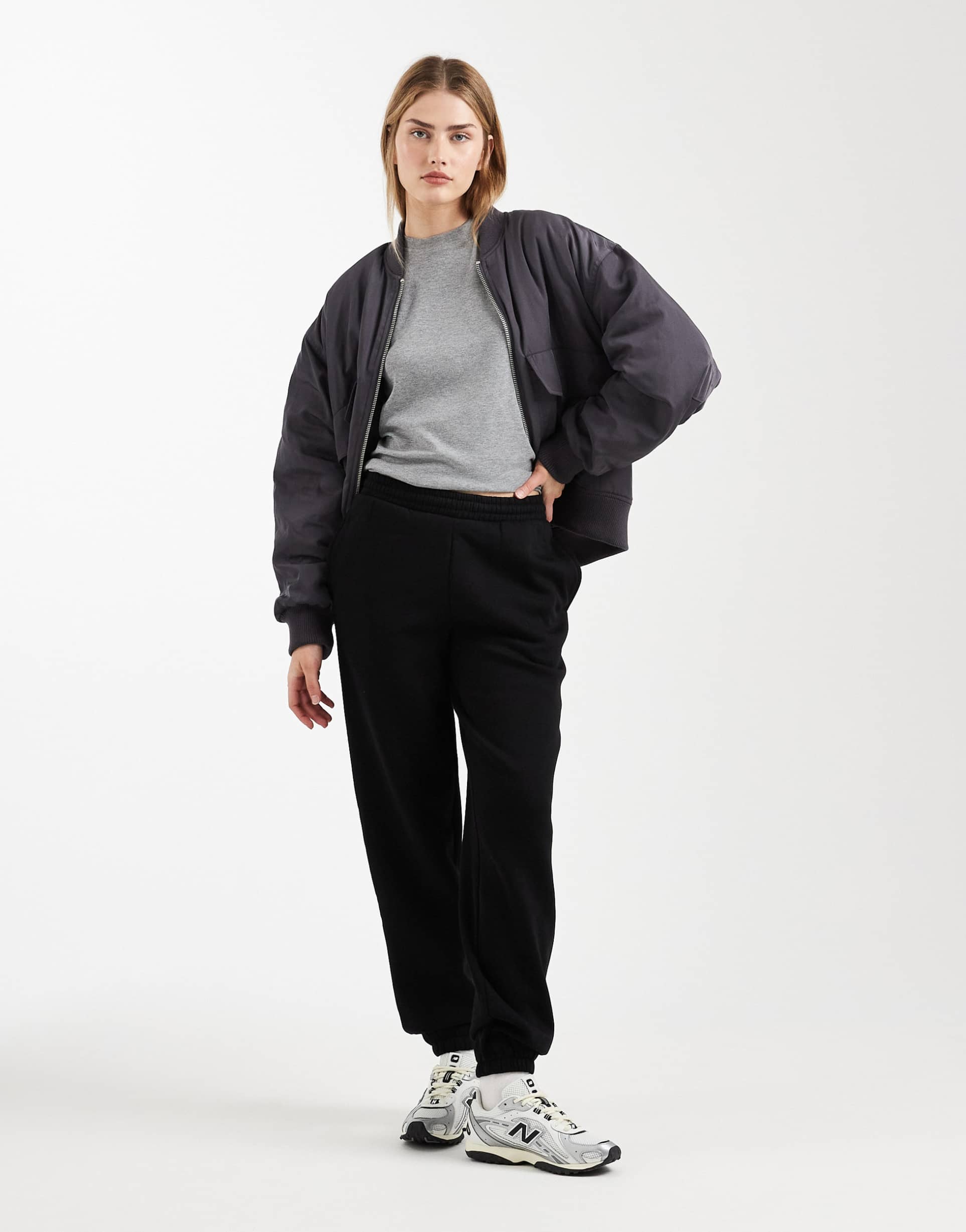 Effortless comfort defines this black jogger, crafted from soft-brushed fleece for a warm, inviting hand. The elasticized waistband and side pockets keep the silhouette laid-back yet practical, while the cuffed hems create a clean, modern line through the leg. In a versatile all‑black finish, these trousers move seamlessly from casual weekdays to relaxed weekend plans, pairing perfectly with a cozy sweatshirt or a sleek bomber. A reliable, everyday staple that blends everyday ease with a touch of sporty polish.