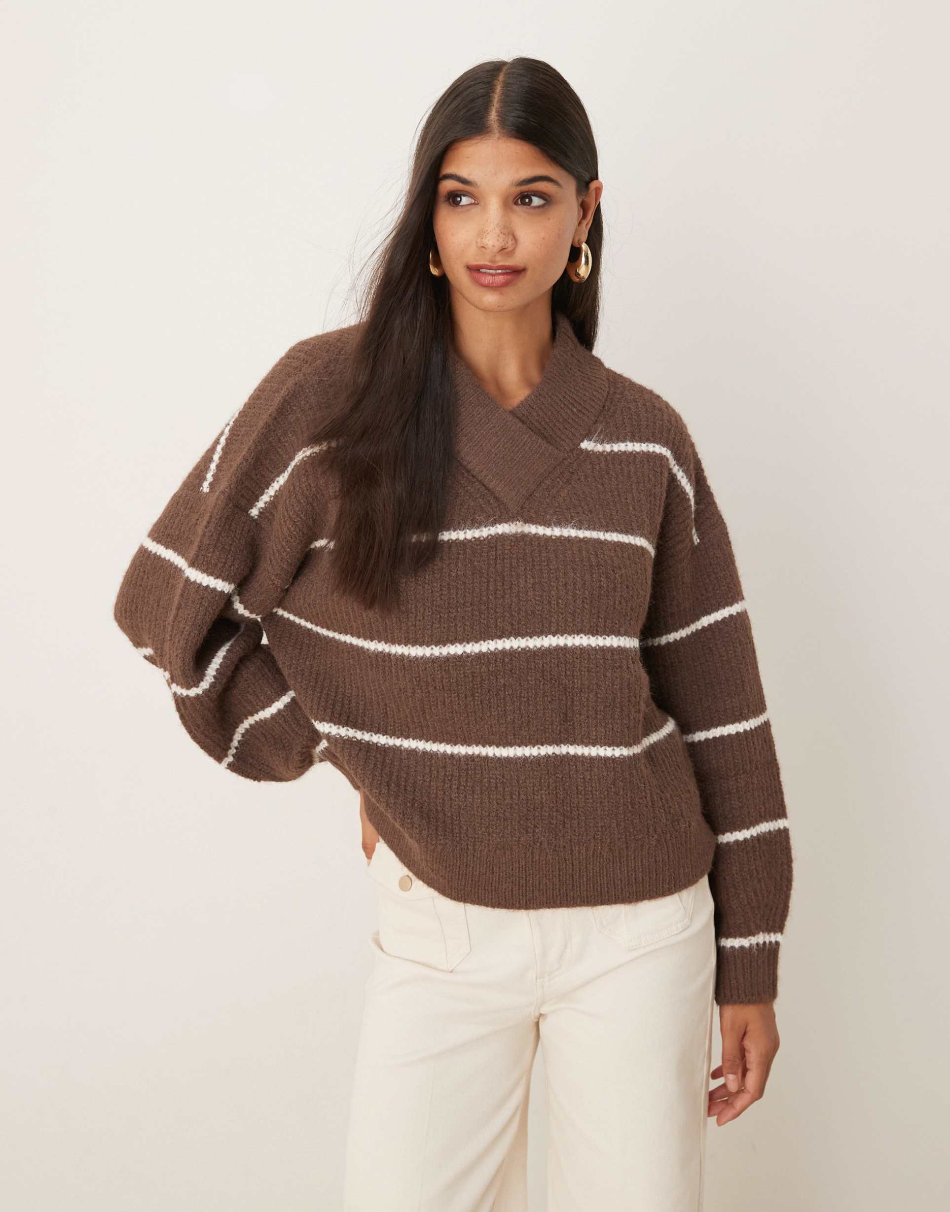 brown and white striped sweater