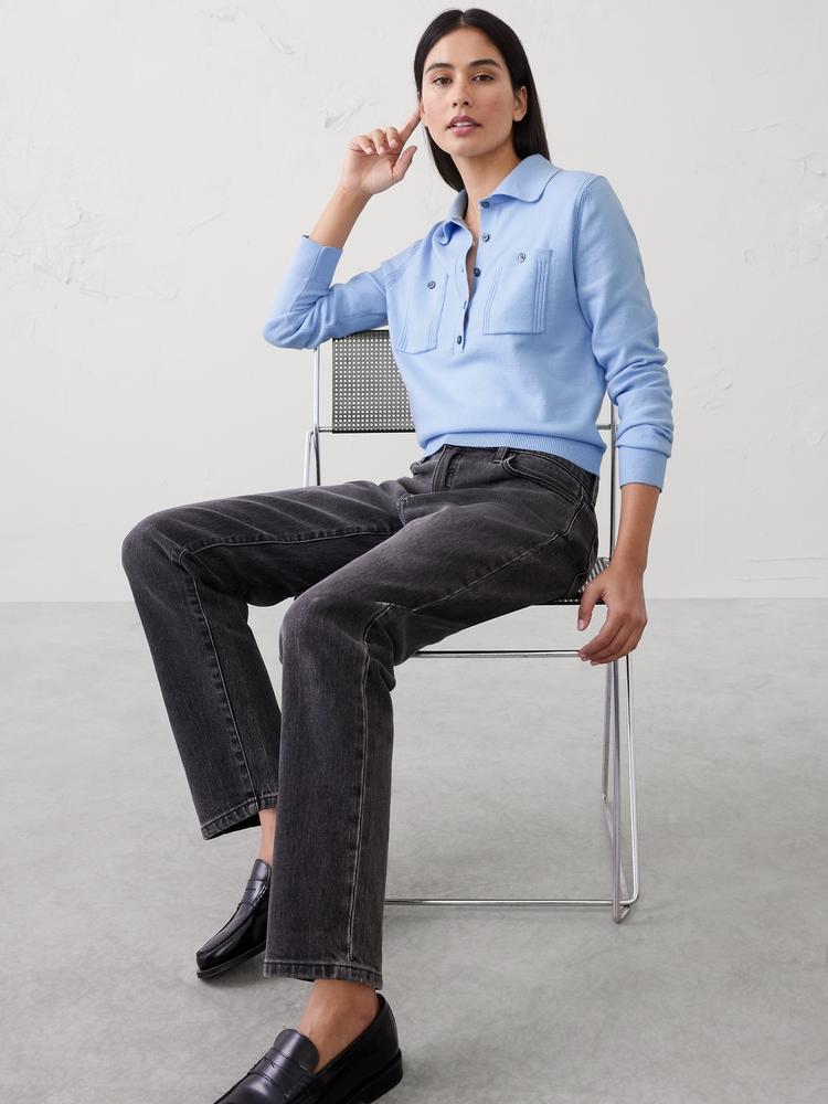 CLOUD SOFT POLO HENLEY PULLOVER SWEATER