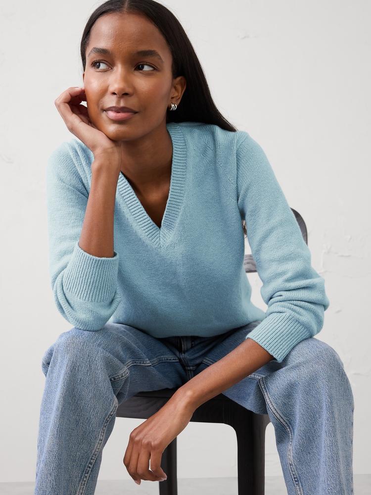 Cotton On luxe crew neck sweater in blue and gray stripes
