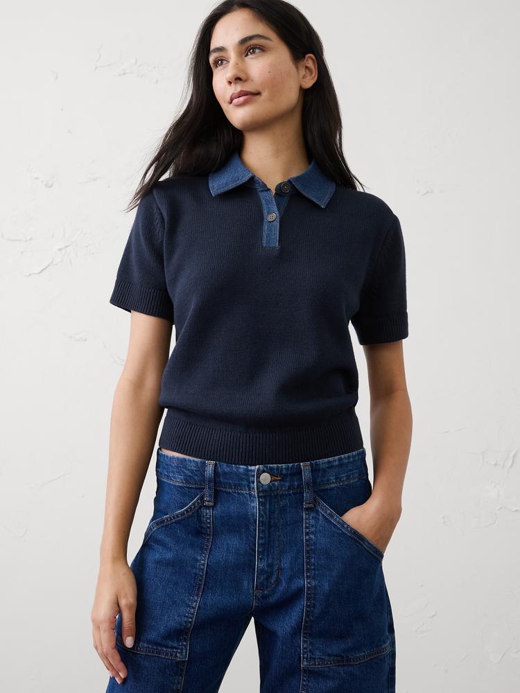 DENIM COLLAR SWEATER POLO