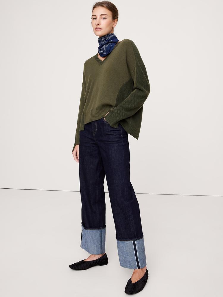 CASHMERE MIXED-STITCH V-NECK SWEATER