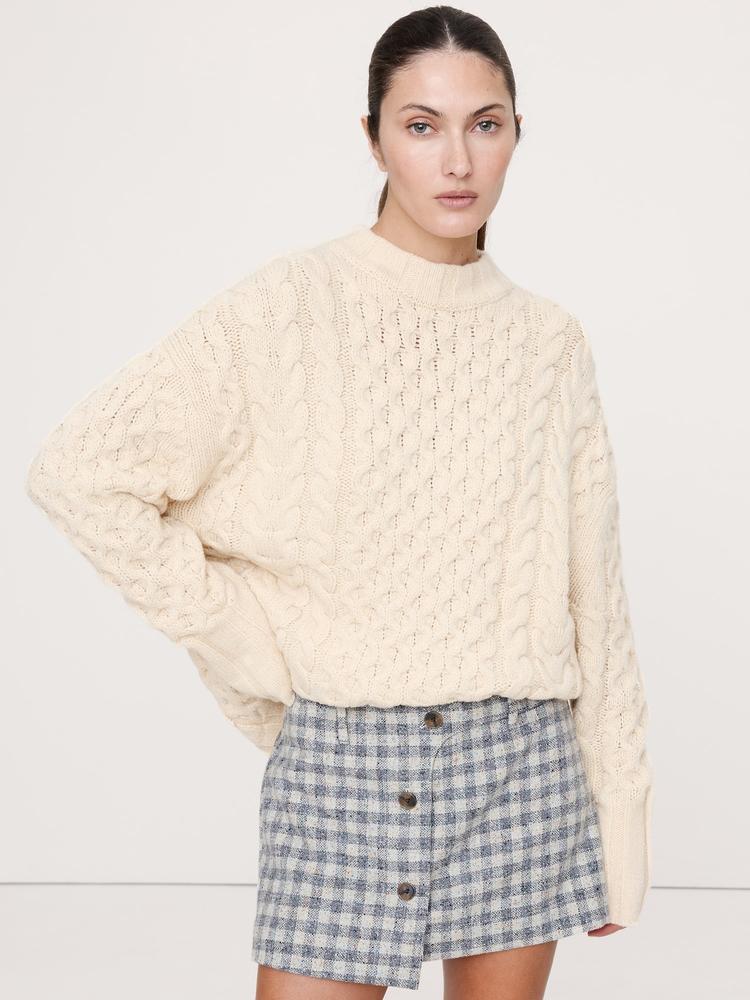 ITALIAN MERINO-BLEND CABLE TUNIC SWEATER