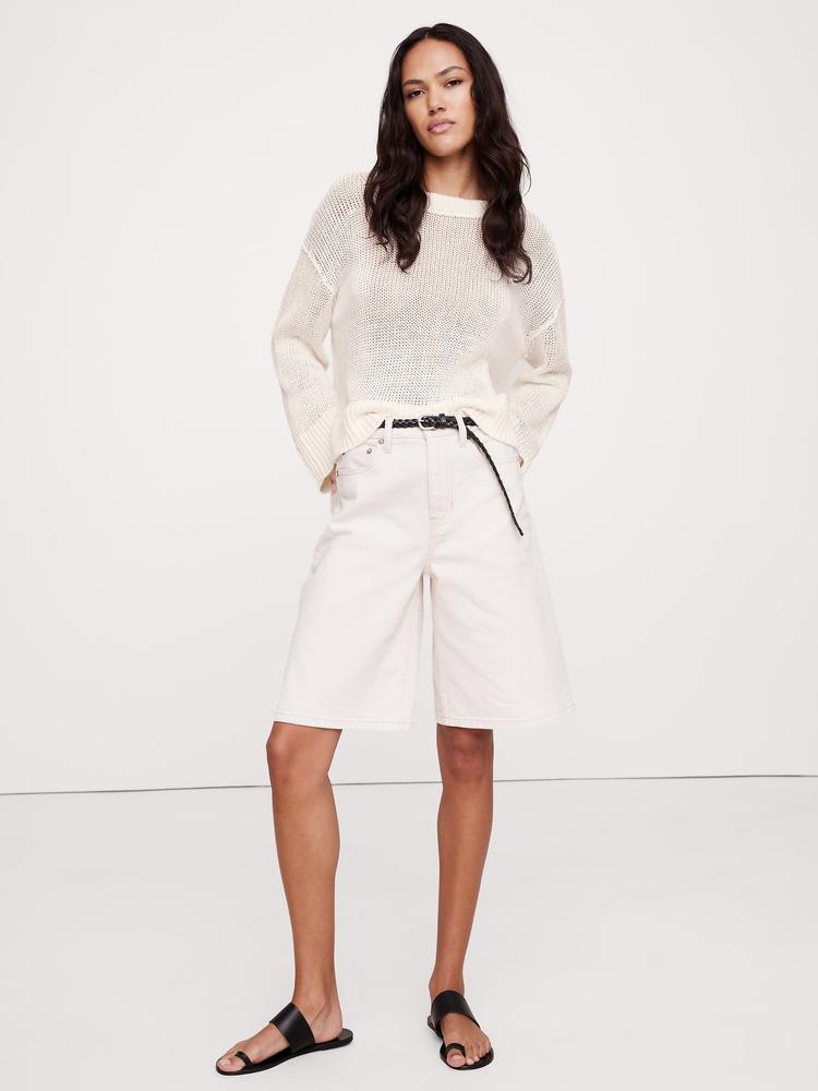This summer we're living in 100% linen. Enter, this long-sleeve sweater. It has a slouchy fit and textured seams. Plus, we knit it in our signature, chunky linen yarn using a stitch that gives it beautiful drape and semi-sheer look.Oversized fit: Extra room through chest, shoulders, and waist. Dropped shoulder seams.Crew neck.Straight hem with 6" slits at the sides.#711875