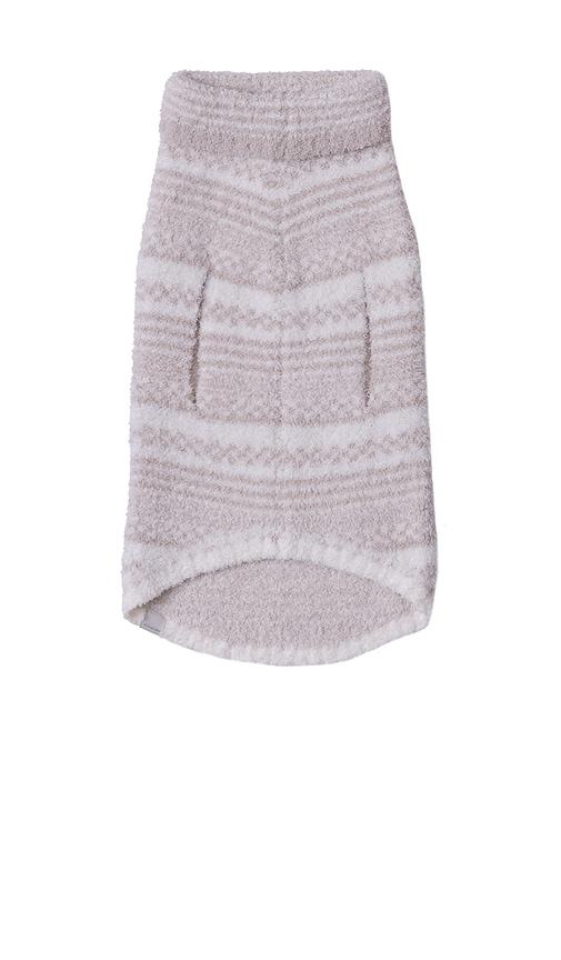 BAREFOOT DREAMS COZYCHIC CHECKERED STRIPE PET SWEATER IN CREAM.