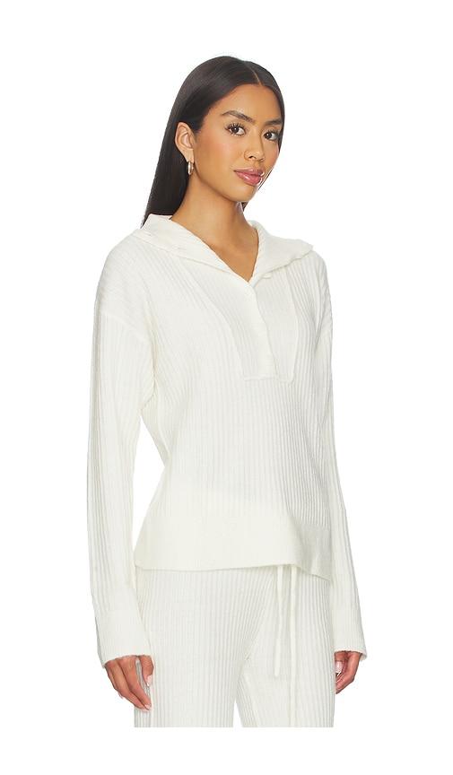 BOBI BUTTON FUNNEL NECK SWEATER IN CREAM.