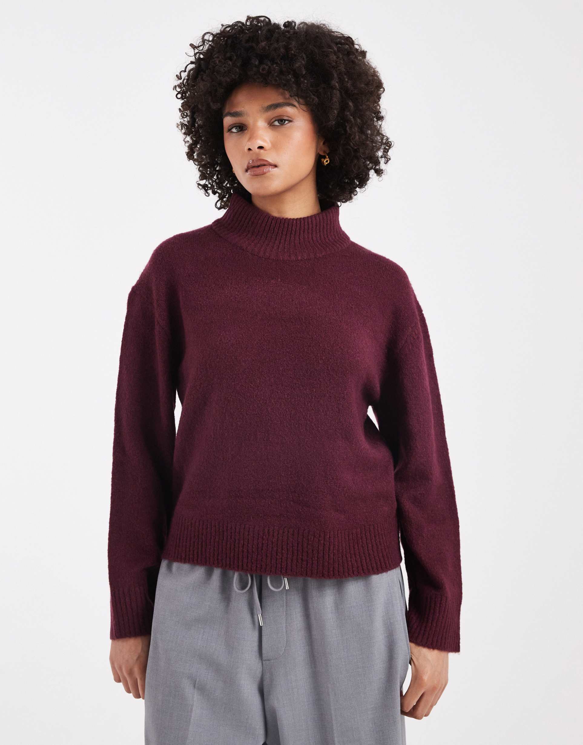 BRAVE SOUL HIGH NECK KNIT SWEATER IN AUBERGINE