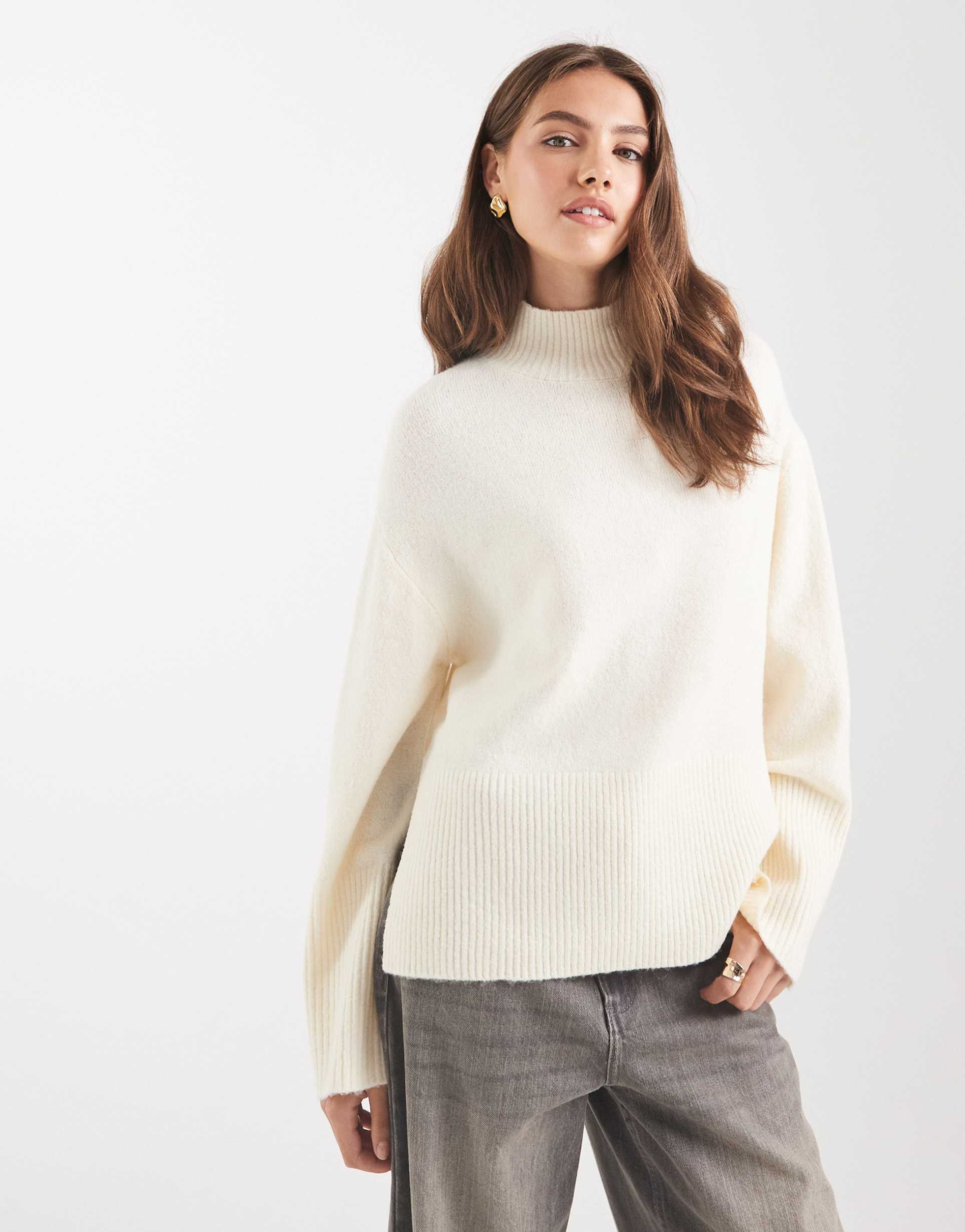 BRAVE SOUL HIGH NECK SWEATER WITH WIDE SLEEVES IN CREAM
