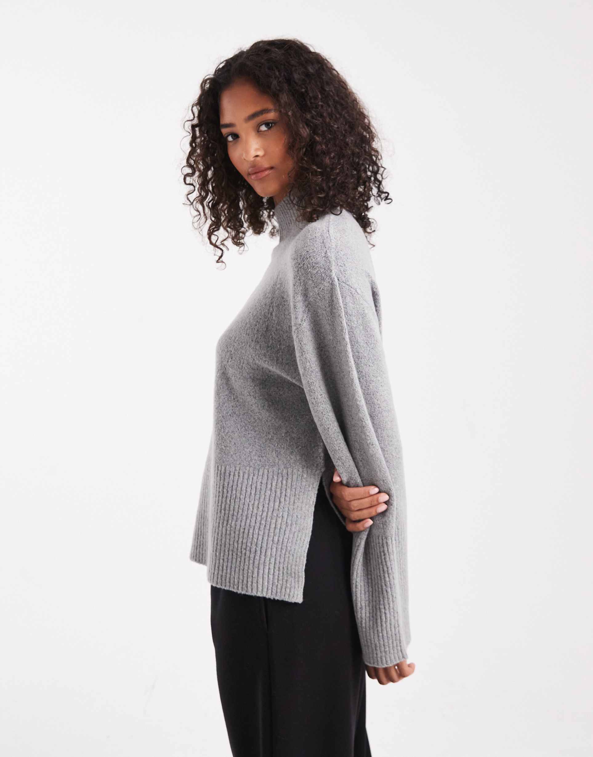 BRAVE SOUL HIGH NECK SWEATER WITH WIDE SLEEVES IN GRAY