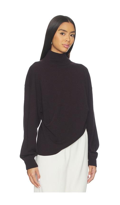 EAVES ALLMA ASYMMETRIC SWEATER IN BROWN.