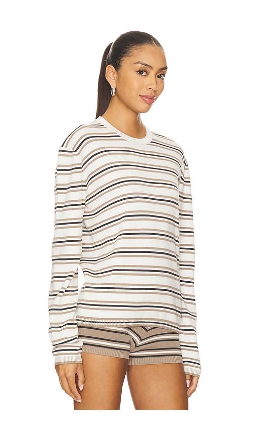 EAVES CYDNEE STRIPED OVERSIZED SWEATER IN WHITE,TAUPE.
