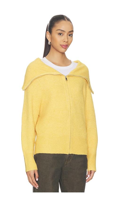 ELODIE THE LABEL LEIGH ZIPUP SWEATER IN MUSTARD.