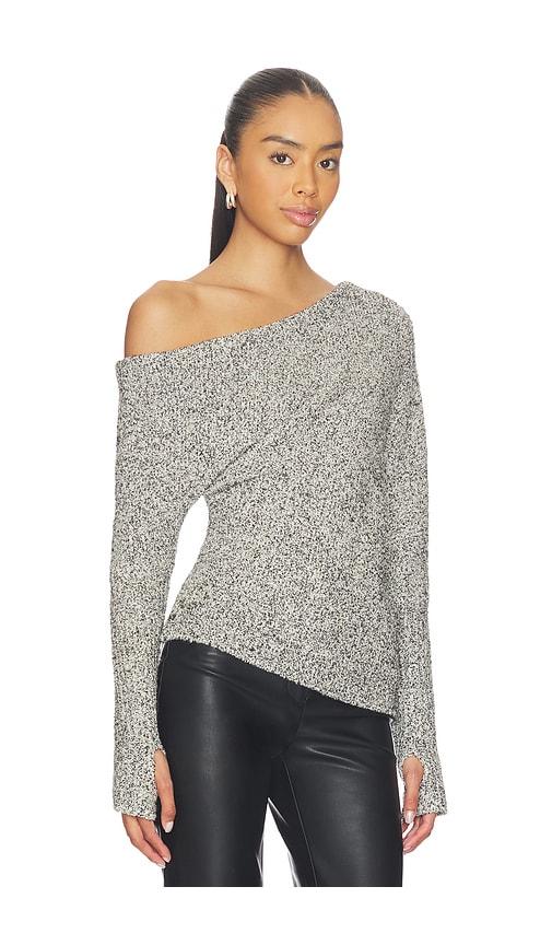ENZA COSTA BOUCLE KNIT SLOUCH SWEATER IN GREY.