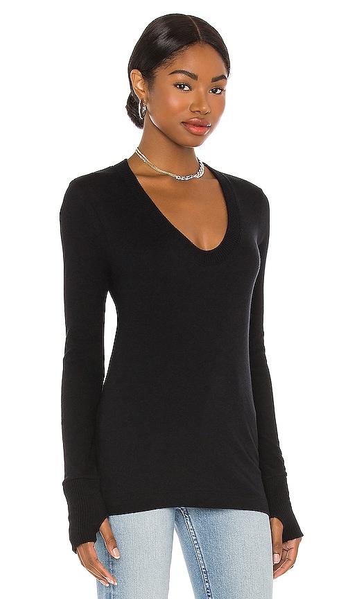 ENZA COSTA CASHMERE FITTED V NECK SWEATER IN BLACK.
