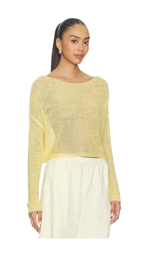 ENZA COSTA LINEN OPEN KNIT BATEAU SWEATER IN YELLOW.