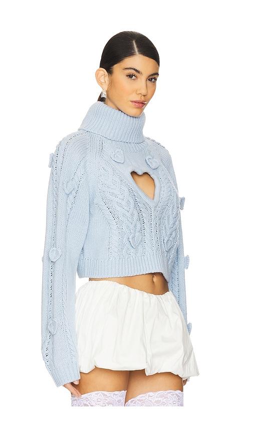 FOR LOVE & LEMONS REBECCA HEART SWEATER IN BABY BLUE.