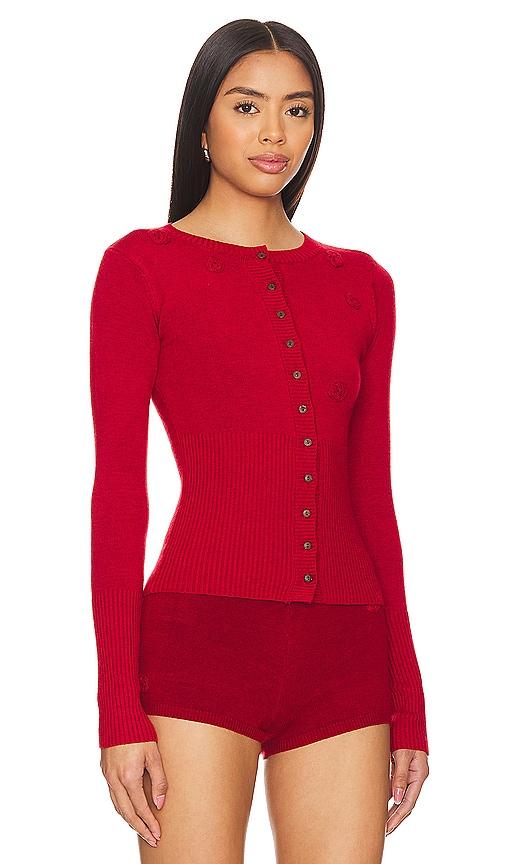 FRANKIES BIKINIS LENON CLOUD KNIT SWEATER IN RED.