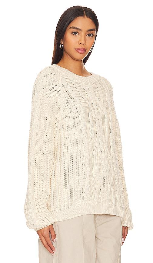 FREE PEOPLE FRANKIE CABLE SWEATER IN IVORY.
