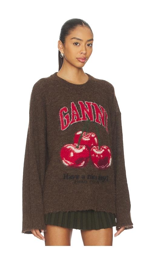 GANNI BRUSHED ALPACA GRAPHIC OVERSIZED SWEATER IN BROWN.