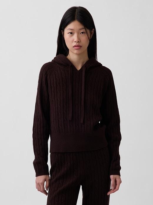 CASHSOFT RELAXED CABLE-KNIT HOODIE