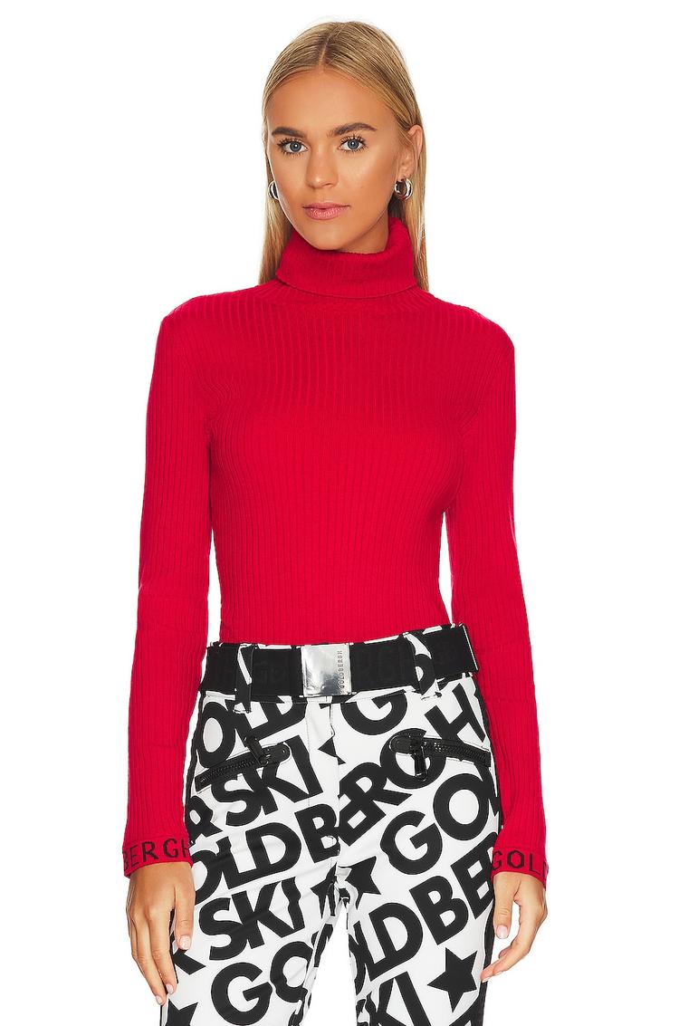 This Mira Sweater showcases a vibrant red hue crafted from a soft blend of acrylic, merino wool, and polyamide. Featuring a fitted silhouette with long regular sleeves and a high neck foldover neckline, it offers warmth and style for autumn and winter seasons. The ribbed knit jersey fabric adds subtle texture, making it a versatile layering piece. Ideal for casual outings, workwear, or travel, this hip-length pullover sweater balances comfort with a classic minimalist aesthetic.