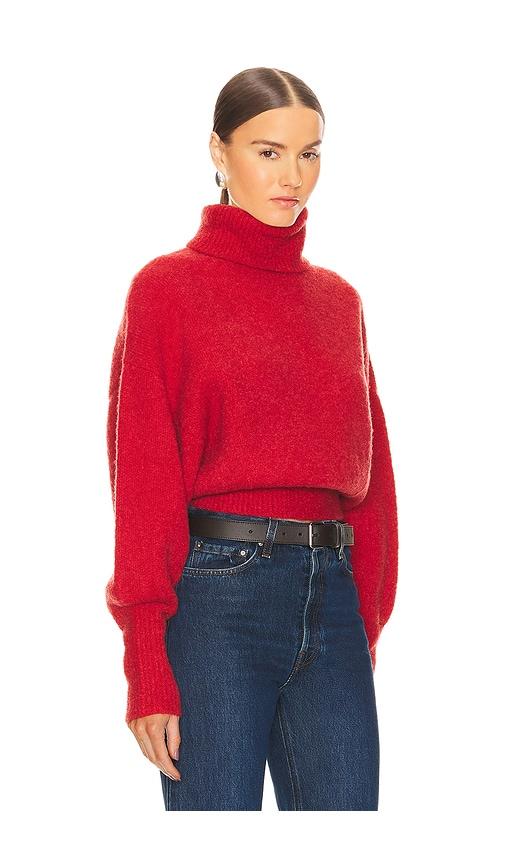 GRLFRND ELYA TURTLENECK SWEATER IN RED.