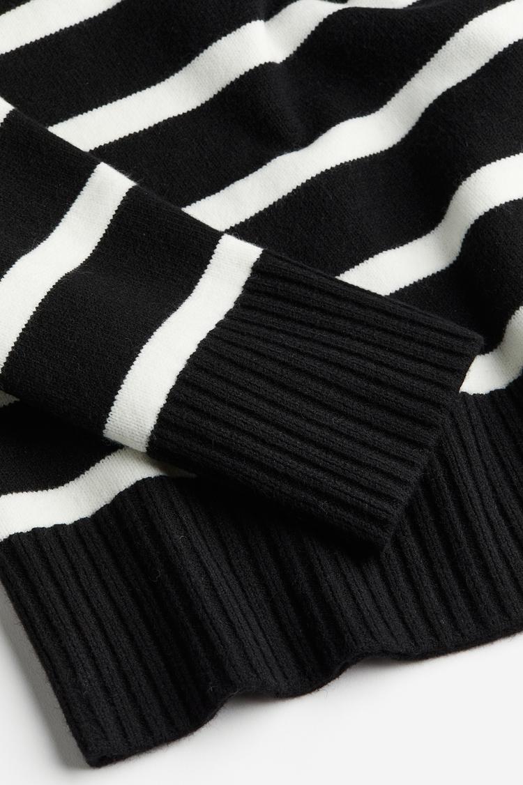 Soft, loose-fit knit sweater. Round neckline, heavily dropped shoulders, and long sleeves. Ribbing at neckline, cuffs, and hem.