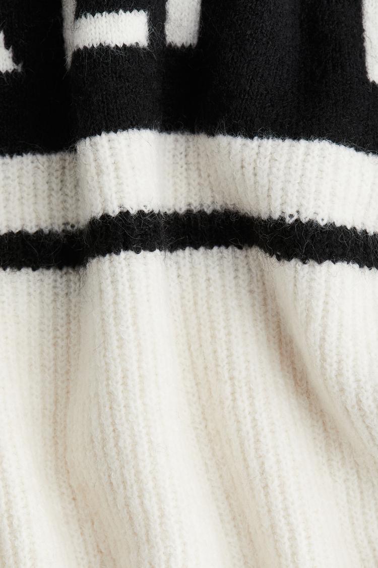 This loose-fit sweater features a soft jacquard knit fabric with a bold black text motif across the front. Designed with long raglan sleeves and a classic crew neckline, it offers a comfortable, casual silhouette that hits at the waist. The monochrome black and white palette enhances its street style appeal, making it perfect for casual outings, loungewear, or layering in cooler spring and autumn days.