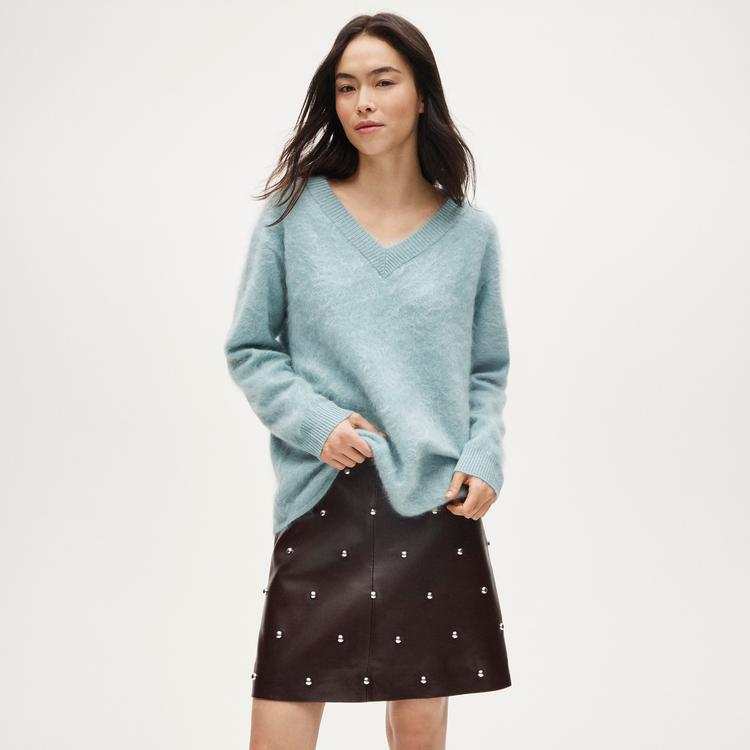 BRUSHED CASHMERE RELAXED V-NECK SWEATER