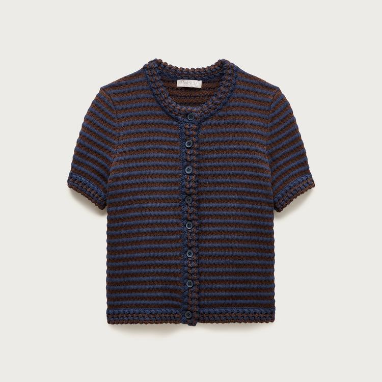 CROCHET SHORT-SLEEVE CARDIGAN IN STRIPE