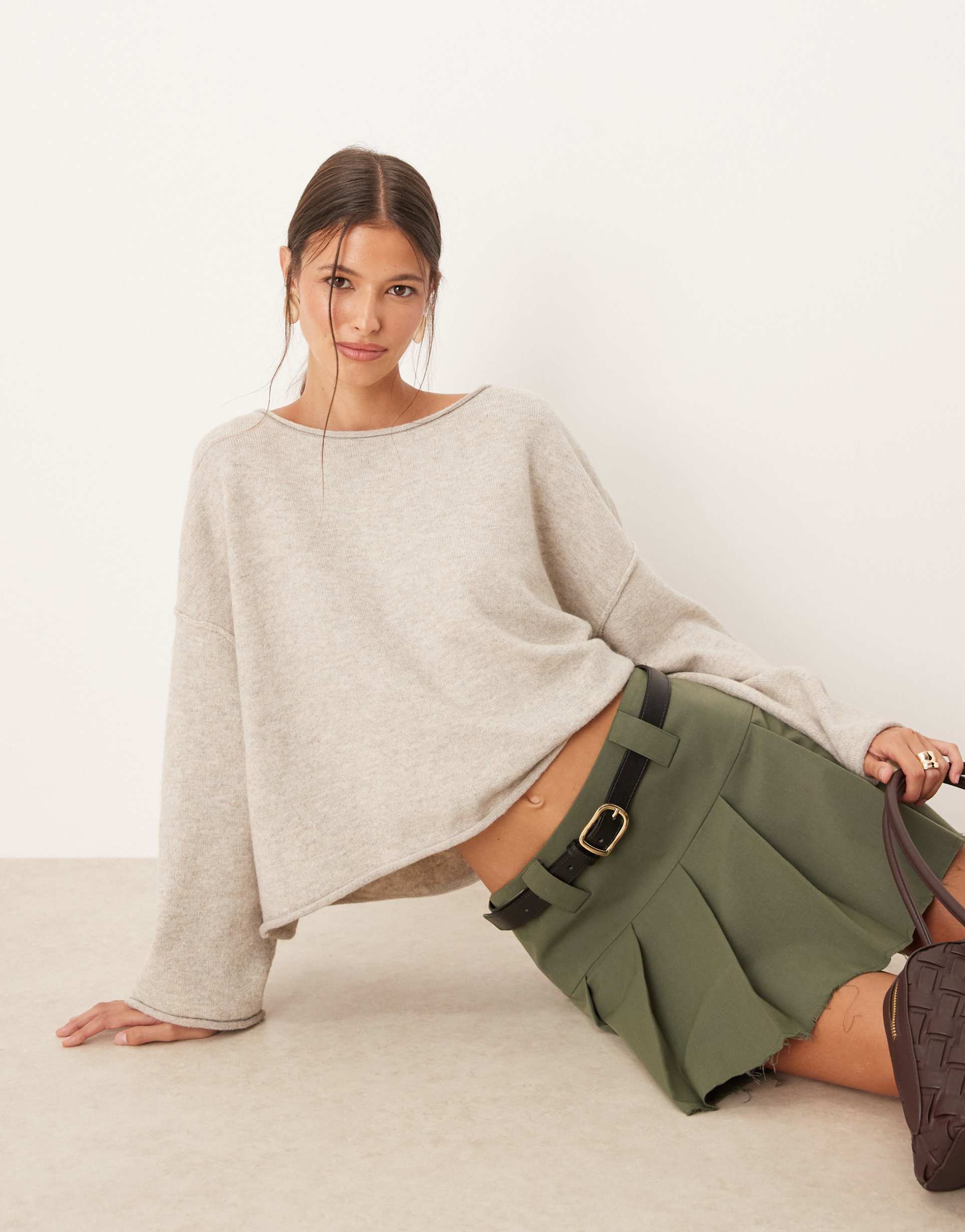 JDY BOATNECK KNITTED SWEATER IN STONE