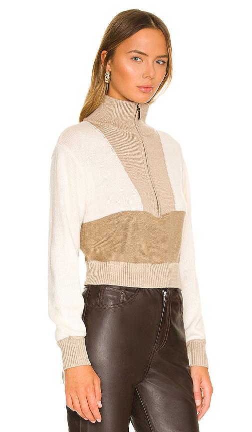 L'ACADEMIE CHESHIRE HALF ZIP SWEATER IN BEIGE.
