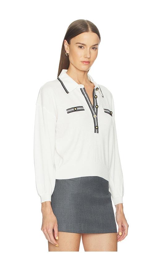 L'AGENCE MALAKI 3/4 SLEEVE COLLARED SWEATER IN WHITE.