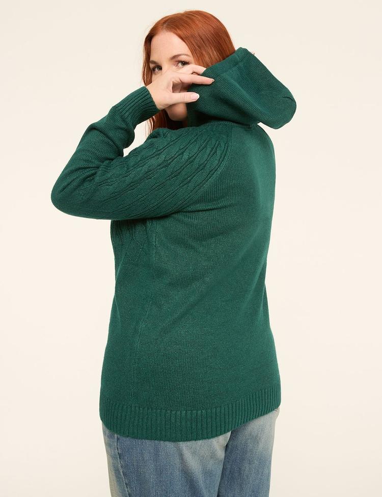 Available in Plus Size Hoodie comfort with intricate cable knit makes this style a must-have for the chilly seasons. FIT: Classic. Designed for curves and a not-too-tight, not-too-loose, just-right fit. Front Length (On Body): 31" Longer length is perfect for added coverage FEATURES: Classic hood with drawstring Long sleeves Ribbed trim FABRIC: Cozy-soft sweater knit with the perfect amount of stretch Machine Wash Cold With Like Colors Only Non-Chlorine Bleach When Needed Reshape And Lay Flat To Dry Cool Iron If Needed 100% Polyester Item Number #413227 Imported Plus Size Top ". Plus Size Cable Knit Hoodie Sweater, in Dark Green, 22/24, Women's, Lane Bryant