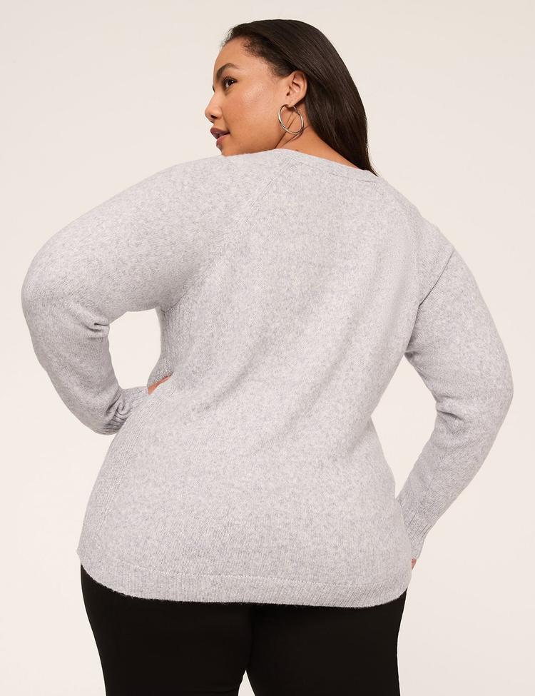 Available in Plus Size Get the layered lace look and so-soft sweater knit all in one with this V-neck FIT: Classic. Designed for curves and a not-too-tight, not-too-loose, just-right fit. Front Length (On Body): 29" Standard length FEATURES: V-neck Long sleeves Ribbed trim Attached lace detail at neckline FABRIC: Soft sweater knit with the perfect amount of stretch MACHINE WASH COLD WITH LIKE COLORS, ONLY NON-CHLORINE BLEACH WHEN NEEDED, TUMBLE DRY LOW, COOL IRON IF NEEDED 65% COTTON 35% ACRYLIC EXCLUSIVE OF DECORATION Item Number #413491 Imported Plus Size Top ". Plus Size Layered Lace V-Neck Pullover Sweater, in Grey, 10/12, Women's, Lane Bryant