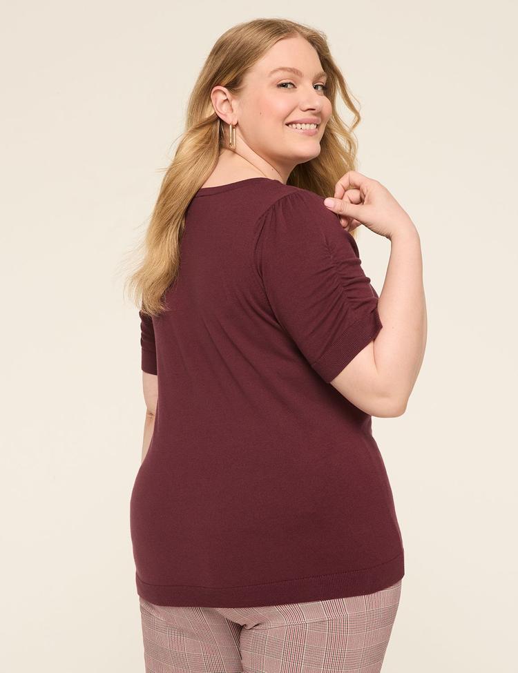 PUFF-SLEEVE V-NECK SWEATER