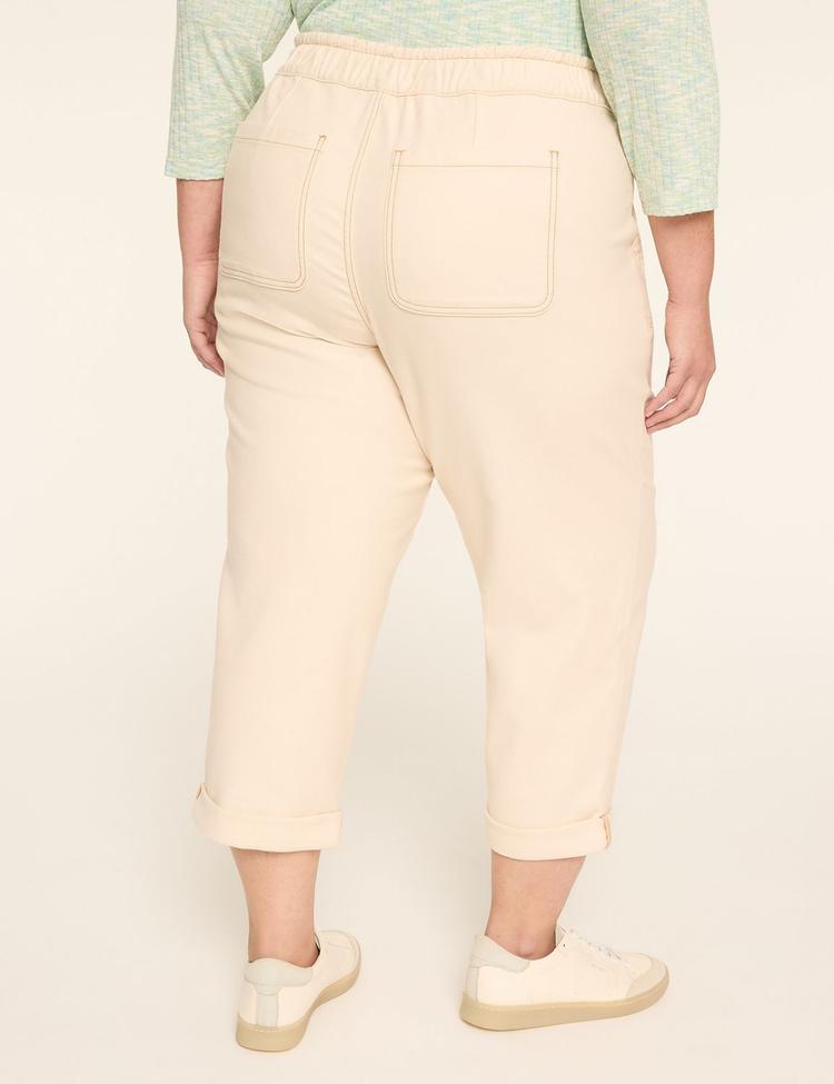 PULL-ON KNIT DENIM CURVED ANKLE JEAN